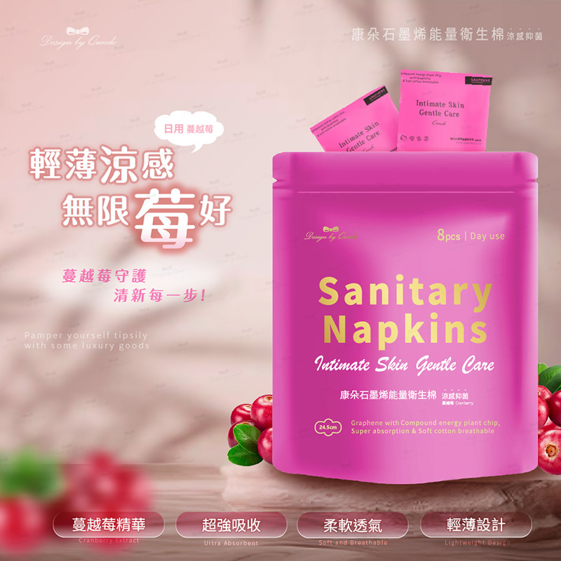 康朵石墨烯能量衛生棉-日用型 (蔓越莓/8入)