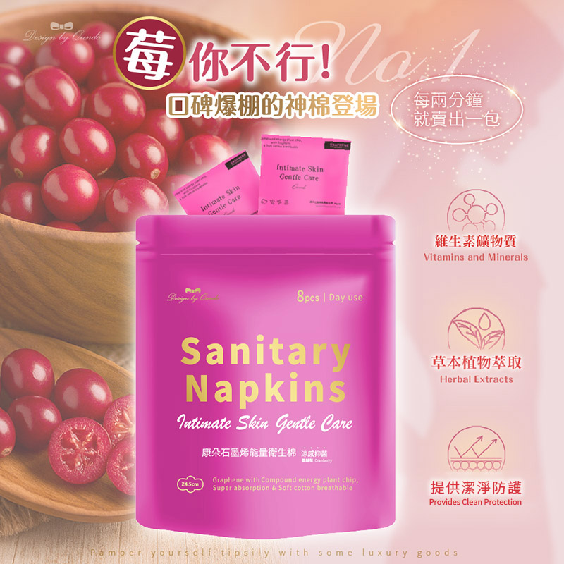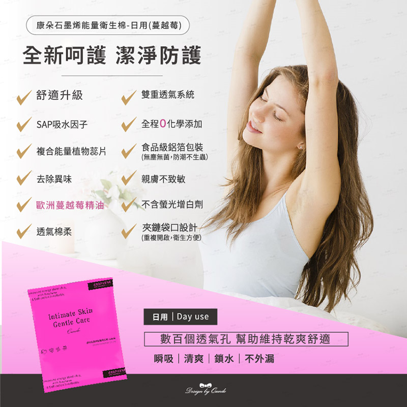 品名:康朵石墨烯能量衛生棉-日用型 (蔓越莓/8入)