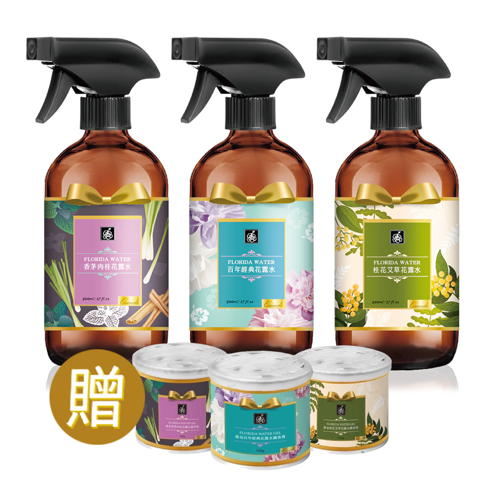 康朵花露水 500ml×3罐(百年經典、桂花艾草、香茅肉桂各1罐)
