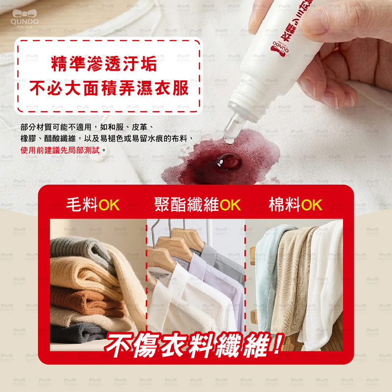 使用方式:取適量去漬液擠出至欲清潔之衣物上。