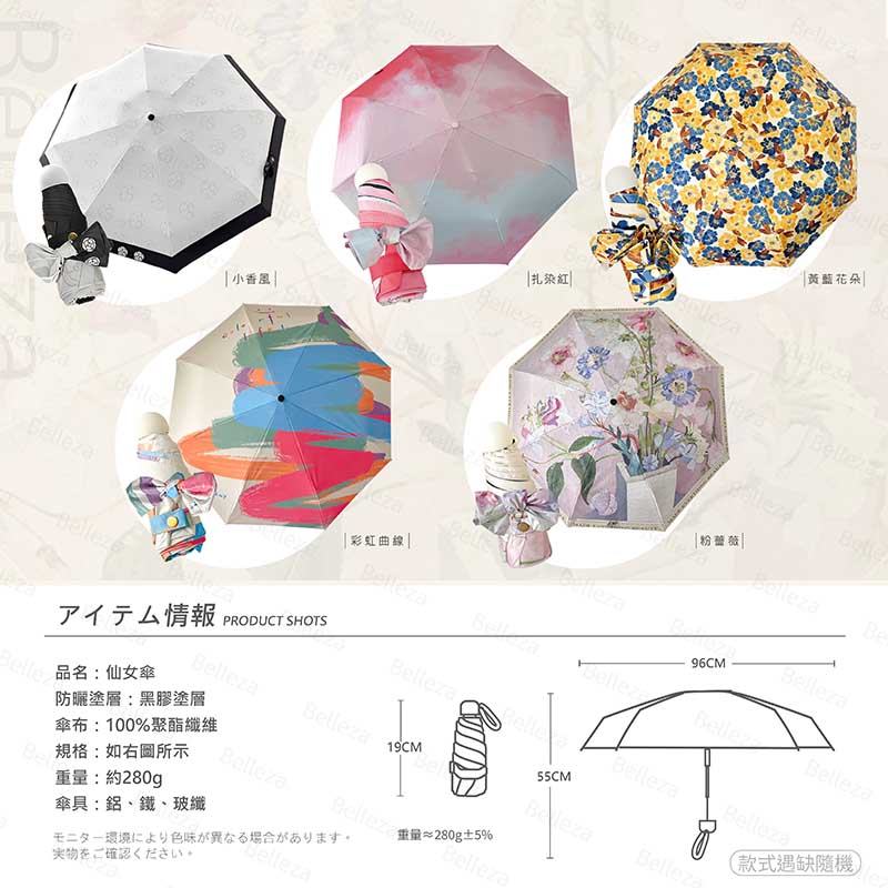 品 名:Belleza限定款極輕抗UV兩用仙女傘