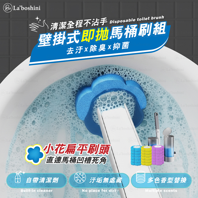 品名: La’boshini壁掛式即拋馬桶刷組(三款)