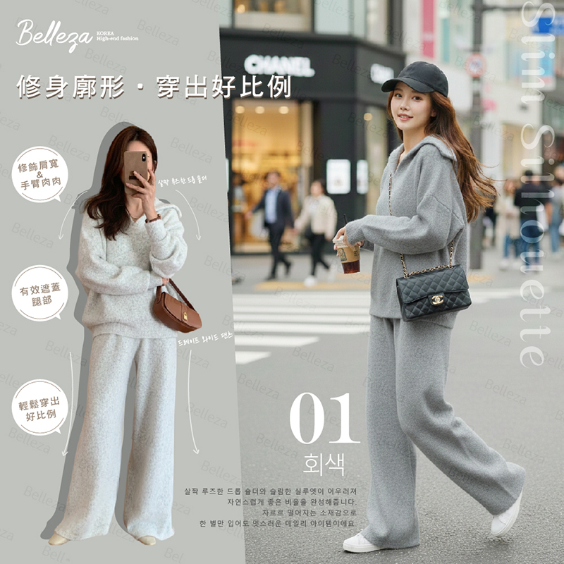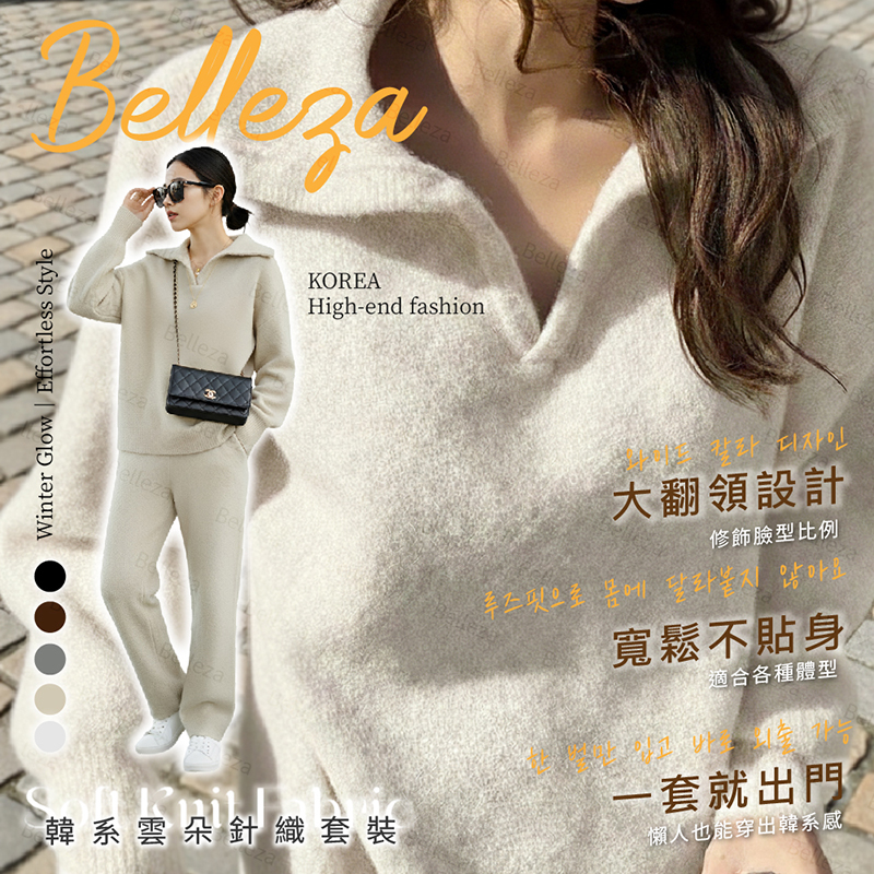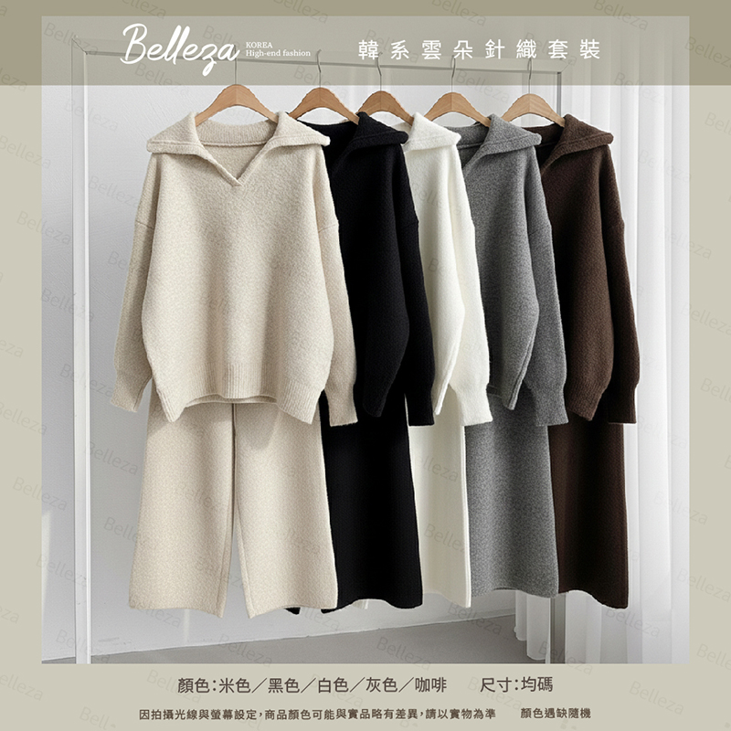 品名:Belleza韓系雲朵針織套裝 (5色)
