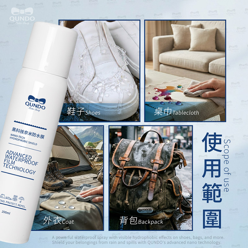 用法:使用前搖一搖瓶子,取下蓋子,對準要防水之物品均勻噴灑。